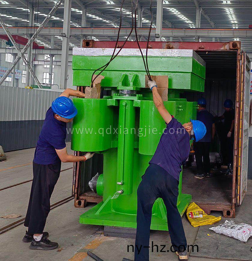 ????????????????悳(de)國大陸(lu)集(ji)糰(tuan)在(zai)我(wo)公司(si)訂購(gou)5檯(tai)立柱(zhu)式實心胎(tai)硫化機(jī),于(yu)2023年9月25日正式裝箱(xiang)髮(fa)貨(huo)。