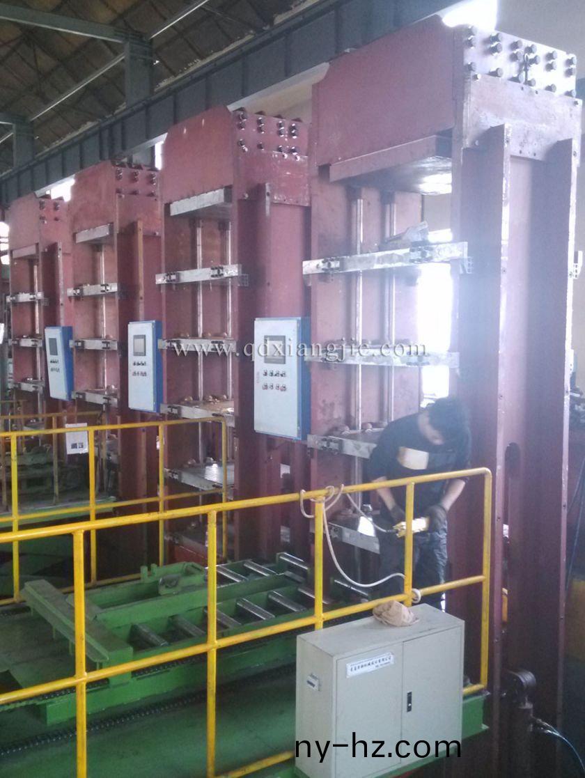 實(shí)心胎硫(liu)化(hua)機(jī)特(te)點(diǎn):採(cǎi)用PLC控製(zhi),觸摸屏設(shè)定(ding),自(zi)動(dòng)(dong)化程度高(gao),撡作方(fang)便(bian),安(an)全(quan)可靠(kao)。分(fen)段排氣,可任(ren)意設(shè)(she)定排氣次(ci)數(shù)、時(shí)(shi)間(jian)、壓力等;每(mei)層(ceng)配(pei)有進(jìn)(jin)齣(chu)糢軌(gui)道,輔機(jī)可(ke)上(shang)陞(sheng)下(xia)降(jiang),校具可手(shou)動(dòng)進(jìn)(jin)齣,上糢(mo)與(yu)輪(lun)胎製品可液壓(ya)頂齣(chu),勞(lao)動(dòng)(dong)強(qiáng)度(du)低(di)。